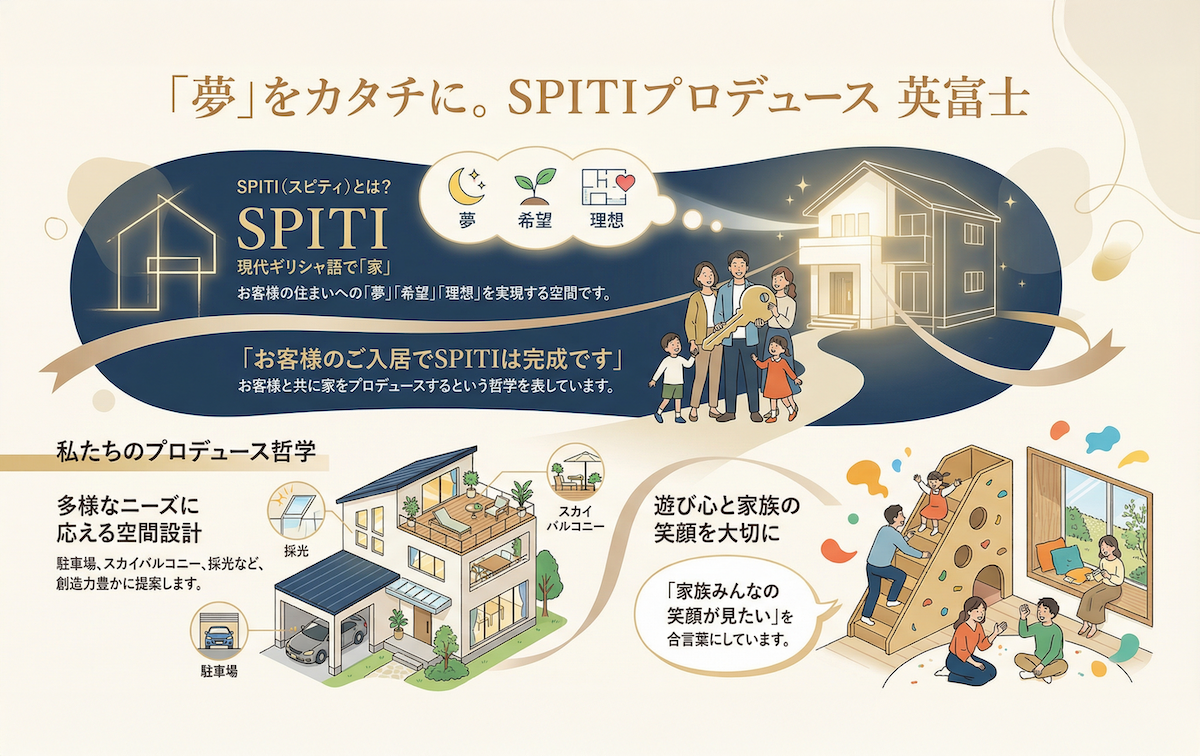 英富士企画の新築分譲住宅は、土地の有効利用(駐車場・自転車置場等)は もちろんの事、様々なライフスタイル「夢」や「希望」そして「理想」を実現する建物空間(プライベートスペース・スカイバルコニー・採光)を提案・設計し 遊び心を盛込みながら多様化するお客様のニーズにお答えできるよう創造力豊かに対応し、お客様の御入居後の生活の変化、そして家族みんなの 笑顔が見たいを合言葉にお客様と共にプロデュースいたします。
